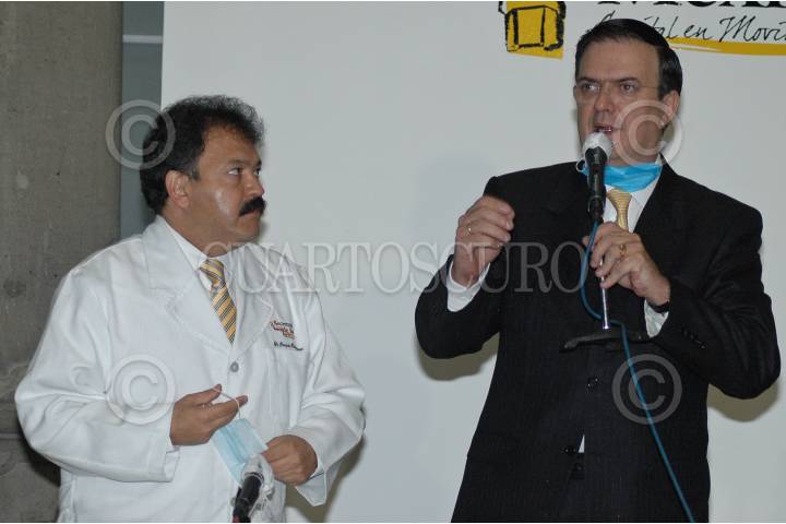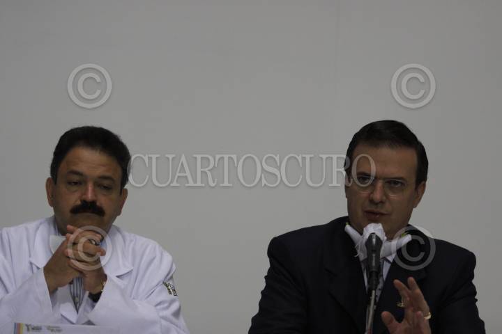 MÉXICO, D.F., 30ABRIL2009.- Armando Ahued Ortega, secretario de Salud capitalino y Marcelo Ebrard, jefe de gobierno del D.F., durante una conferencia de prensa en donde se presento el informe de acciones realizadas por el gobierno capitalino ante la alerta epidemiológica. FOTO: RODOLFO ANGULO/CUARTOSCURO.COM