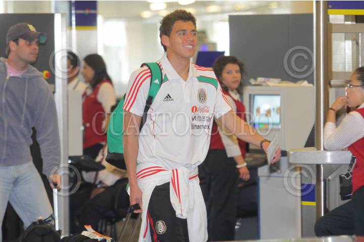 MÉXICO, D.F., 14MAYO2010.- Oscar Perez jugador de la Selección Mexicana de Fútbol a su llegada al Aeropuerto Internacional de la Ciudad de México después de haber realizado una serie de encuentros amistosos en Estados Unidos previo al mundial de Sudafrica 2010. FOTO: RODOLFO ANGULO/CUARTOSCURO.COM