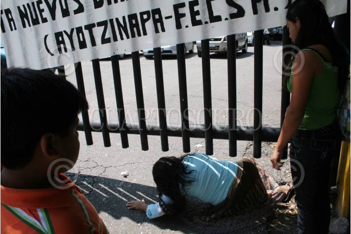 CHILPANCINGO, GUERRERO 23MAYO2009.- Alumnos de la normal rural de Ayotzinapa, tomaron las instalaciones del ex Ineban, para exigir a las autoridades solución a su pliego petitorio de demandas, dejando encerrados a varias personas que se encontraban realizando tramites y trabajadores que se encontraban en el interior del inmueble FOTO: OSCAR ALVARADO/CUARTOSCURO.COM