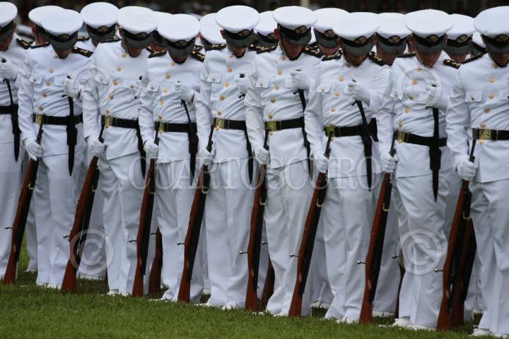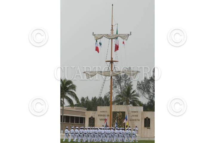 ANTON LIZARDO, VERACRUZ21ABRIL2007.- Cadetes realizando maniobras durante la XCIII de la defensa del Puerto de Veracruz y "Jura de bandera de cadetes en la Heroica Escuela Naval Militar. FOTO JEFTÉ ARGUELLO/CUARTOSCURO.COM