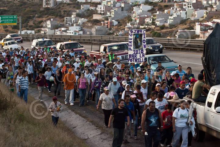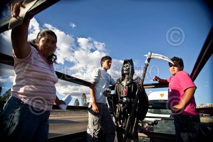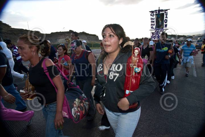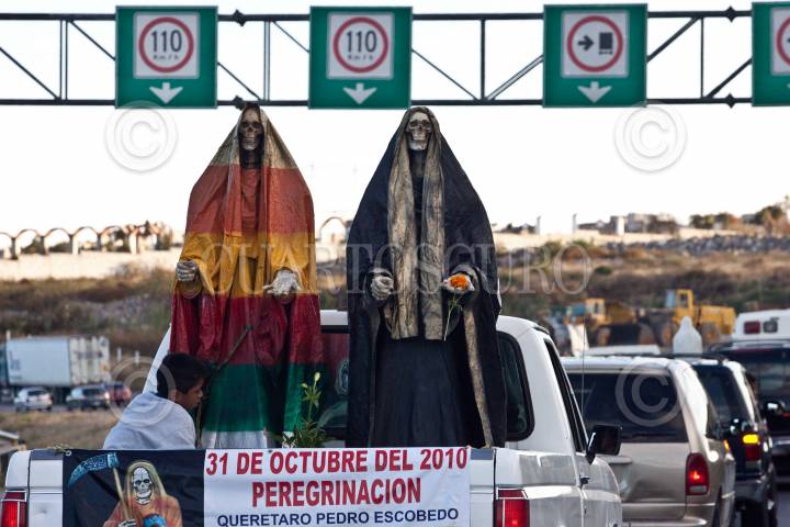 QUERÉTARO, QUERÉTARO, 31OCTUBRE2010.- Procesión de la Santa Muerte. Devotos del culto de la Santa Muerte realizan por primera vez una peregrinación que partió desde la capital del estado hasta el municipio de Pedro Escobedo en las vísperas de los festejos de La Santa Muerte que se realizarán en el Santuario dedicado a su honor. FOTO: DEMIAN CHÁVEZ/CUARTOSCURO.COM