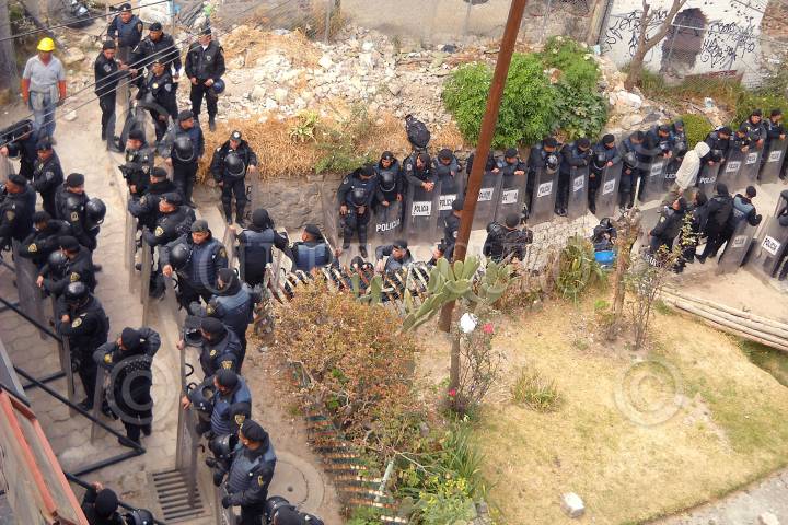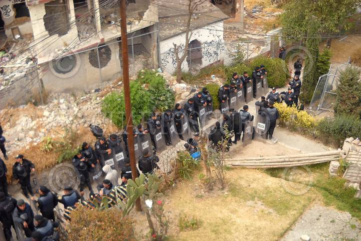 MÉXICO, 01ENERO2011.- Elementos del cuerpo de Granaderos acordonaron la zona conocida como "La Malinche en la Delegación Magdalena Contreras en donde se realizaran las obras de la Super Vía que comunicara la zona de Santa Fe con Luis Cabrera. FOTO: LUIS CARBAYO/CUARTOSCURO.COM