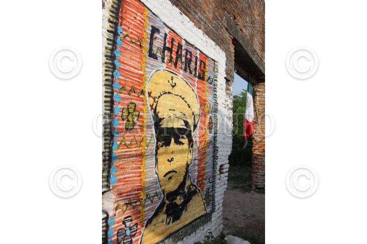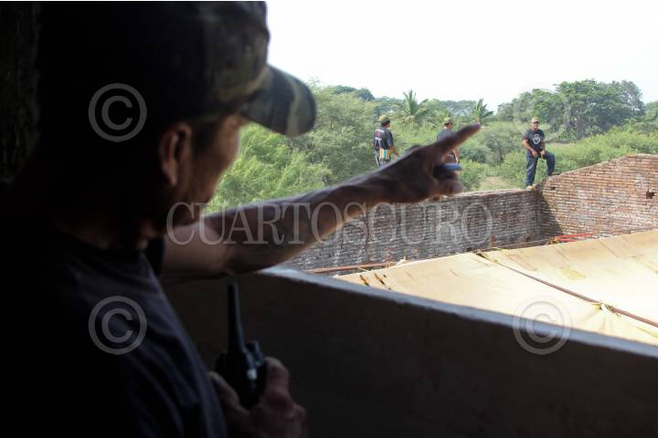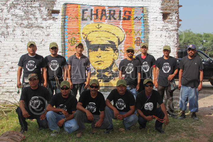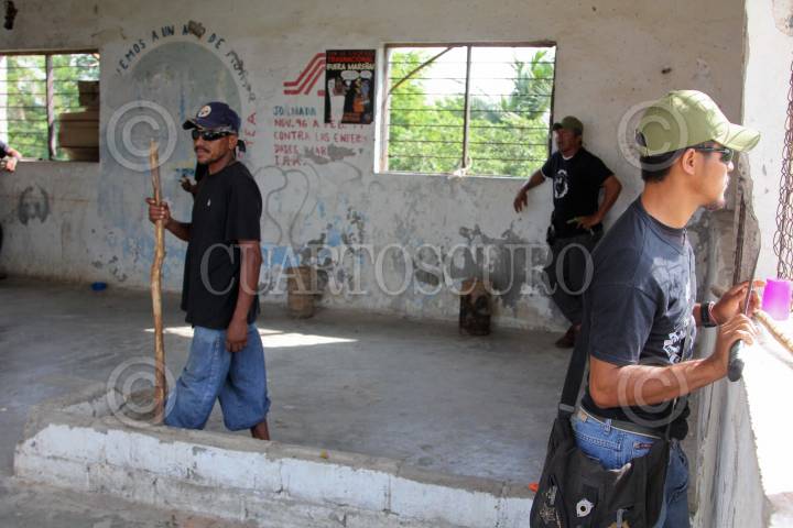 ALVARO OBREGÓN-JUCHITAN, OAXACA, 28JULIO2013.- Cuartel del General “Charis” ubicado en la comunidad del Álvaro Obregón en el Itsmo de Tehuantepec. Policías comunitarios pertenecientes al Movimiento de Resistencia Civil del Itsmo de Tehuantepec, vigilan con palos y resorteras los accesos a las playas San Dionisio del Mar y al Manglar de Santa Teresa para evitar que personal de compañías extranjeras accedan a instalar el megaproyecto de energía eólica centralizada. FOTO: SAÚL LÓPEZ /CUARTOSCURO.COM