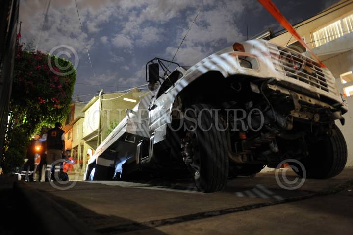 CIUDAD DE MÉXICO, 22ABRIL2016.- A causa del hundimiento de tierra por una fuga de agua en la calle Privada A del pueblo de Culhuacán, una pipa que transportaba agua potable para abastecer dicha colonia, se hundió del eje trasero, al quebrarse el concreto que sostenía el piso firme de esta calle. Bomberos y protección civil, laboraron en este lugar por casi 9 horas para retirar el pesado vehículo. FOTO: LUIS CARBAYO /CUARTOSCURO.COM