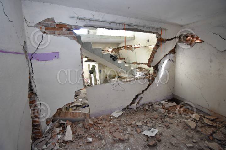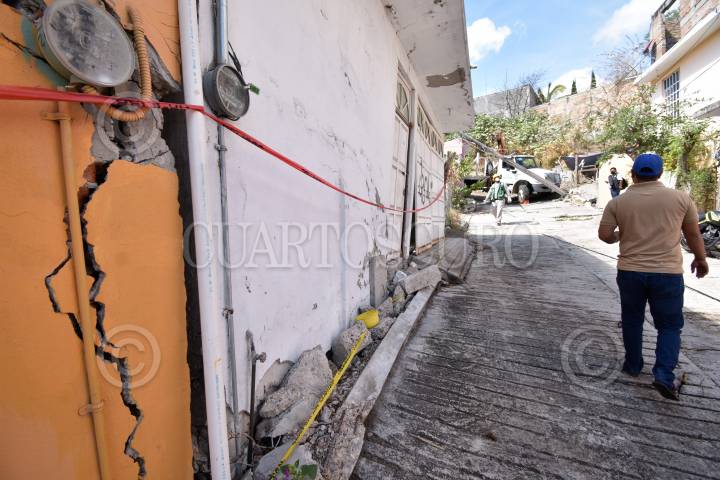 En la colonia Tlacaelle ya son varias las viviendas que presentan severas grietas, algunas de ellas ya deshabitadas por el peligro que representan, vecinos relataron que esta situación inició a partir de las tormentas Ingrid y Manuel en el 2013, hoy por la mañana un poste de la CFE se vino abajo sobre un domicilio debido al reblandecimiento del terreno.