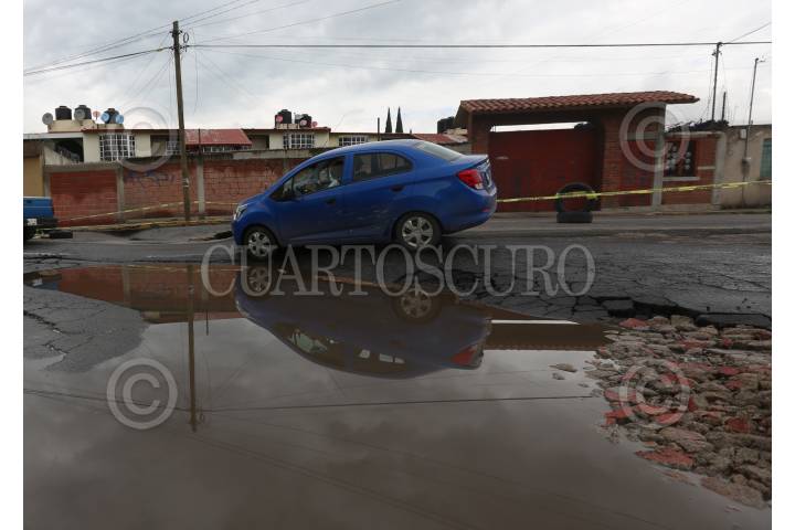 Vecinos de Santa Ana Tlapaltitlám se encuentran alarmados ante el hundimiento que se presenta en la avenida Albert Einstein que con las lluvias de los últimos días ha sido más notorio.