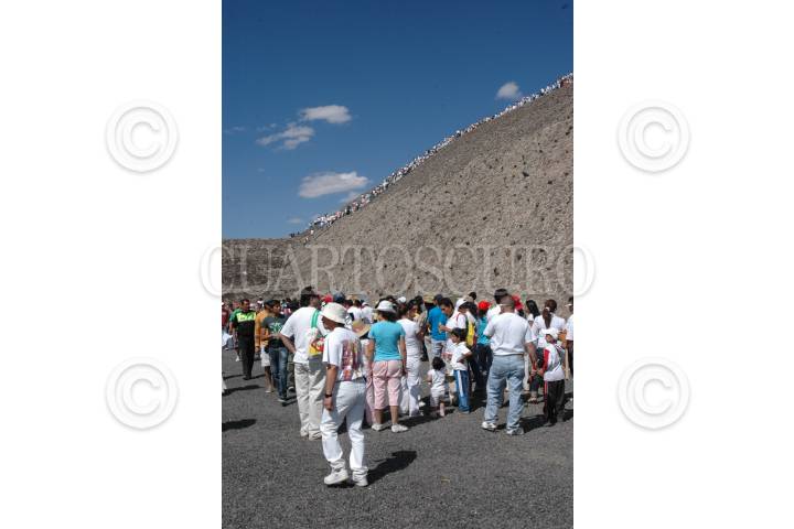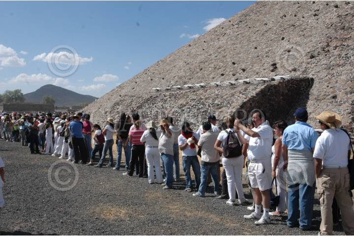 MÉXICO, D.F., 21MARZO2009.- Cientos de visitantes a la zona arqueológica de Teotihuacán esperaron horas para subir a la Pirámide del Sol, con el fin de poder recargarse de energía FOTO:MARIO NULO/CUARTOSCURO.COM