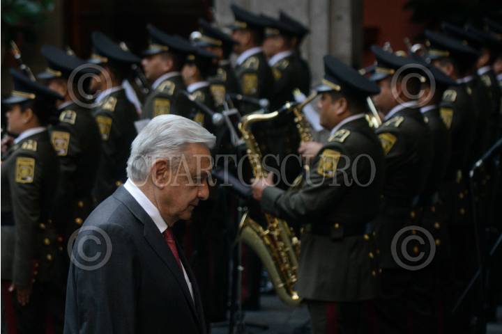 Andrés Manuel López Obrador, presidente de México, durante la ceremonia de recepción en Palacio Nacional a Gustavo Francisco Petro, presidente de la República de Colombia.