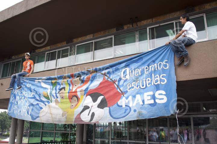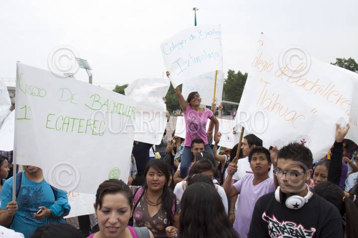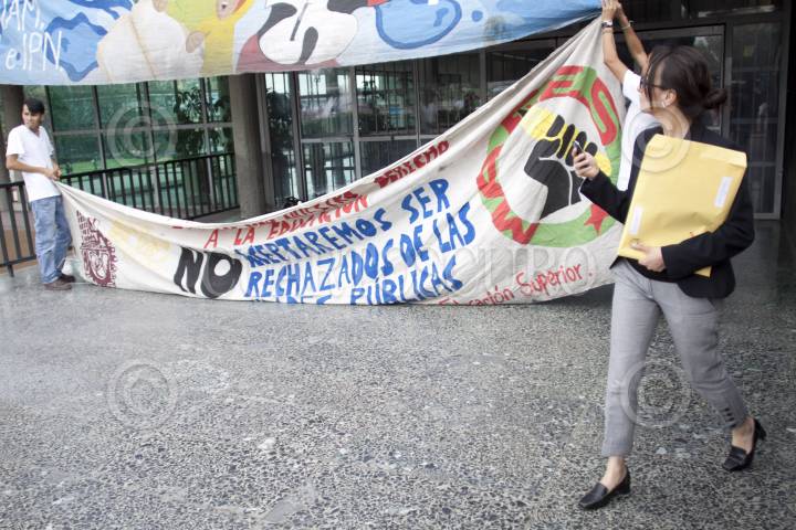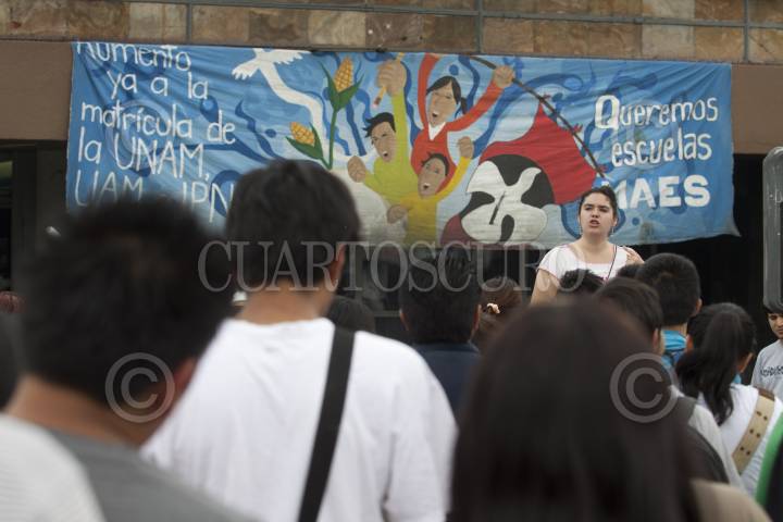 MÉXICO, D.F., 11MAYO2012.- Jóvenes excluidos de las universidades públicas se manifestaron en la explanada de la rectoría de la UNAM. Los estudiantes provenientes principalmente de los colegios de Bachilleres exigieron un lugar en algunas de la instituciones de educación superior como la UNAM, IPN o la UAM. Los jóvenes entregaron un escrito dirigido al Rector, José Narro, que incluye los resultados de una encuesta a 14 mil 226 estudiantes de bachillerato, de los cuales 13 mil 473 afirman que quieren seguir estudiando y un 56 por ciento de ellos desea ingresar a la UNAM. FOTO: MOISÉS PABLO /CUARTOSCURO.COM