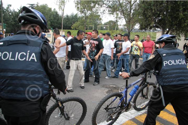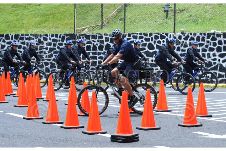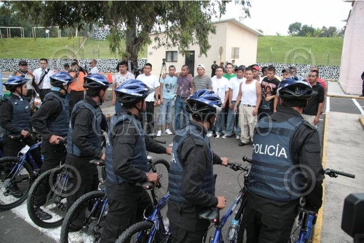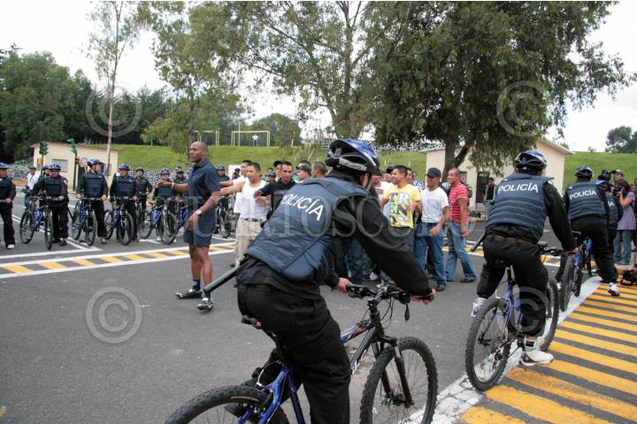 MÉXICO, D.F., 26AGOSTO2009.- Con el objetivo de mejorar las técnicas que desempeñan los elementos del Agrupamiento de bici-patrulleros de la Secretaría de Seguridad Pública del Distrito Federal (SSP-DF), un total de 30 uniformados reciben un Curso de Formación de Instructores en Manejo Defensivo y Ofensivo de Bicicleta, impartido por especialistas pertenecientes al Departamento de Policía del Condado de Los Ángeles, California, Estados Unidos. FOTOS: LUIS CARBAYO/CUARTOSCURO.COM