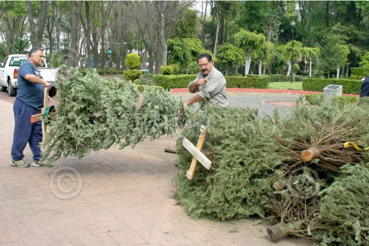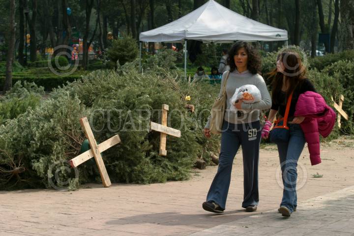MÉXICO, D.F. 13ENERO2010.- Árboles de Navidad secos son dejados en el centro de acopio del parque de los Venados enfrente de la delegación Benito Juarez y a cambio las personas reciben un árbol o una bolsa de composta. FOTO: RODOLFO ANGULO/CUARTOSCURO.COM
