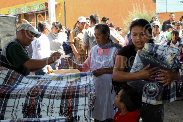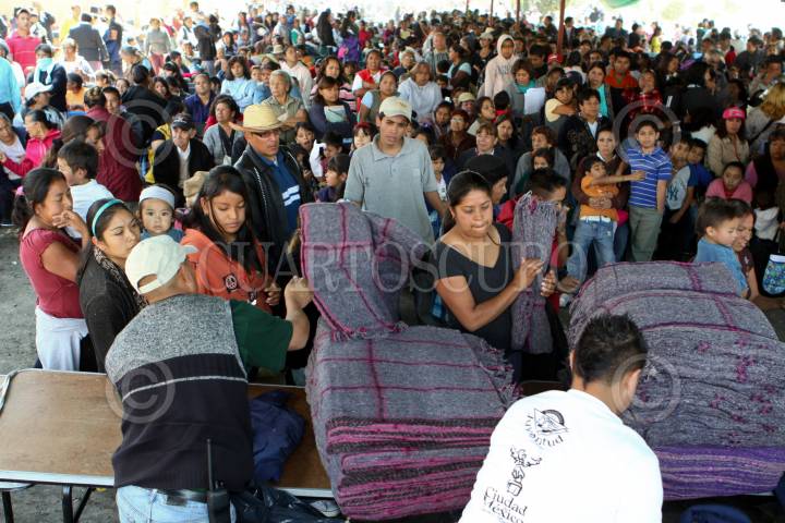 MÉXICO, D.F., 12NOVIEMBRE2010.- Habitantes de la colonia San José Buenavista en la delegación Iztapalapa reciben cobijas durante la primera entrega de apoyos del Programa “En frío invierno, Calor humano” que fue encabezada por Marcelo Ebrard, jefe de gobierno del Distrito Federal. FOTO: RODOLFO ANGULO/CUARTOSCURO.COM