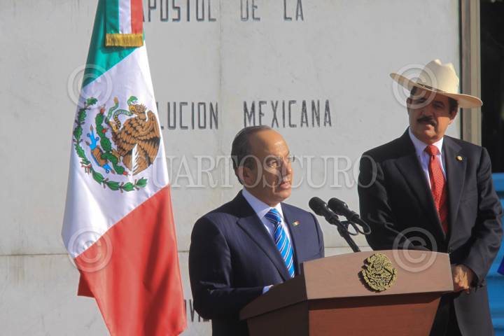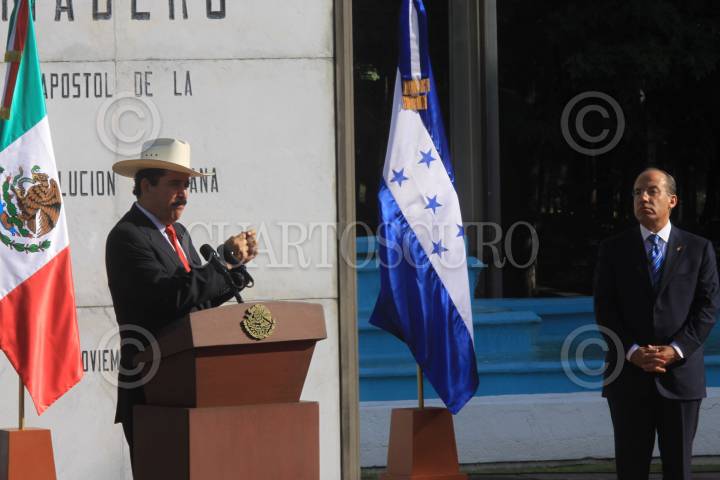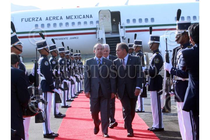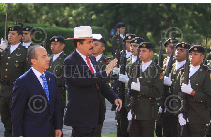 MÉXICO, D.F., 04AGOSTO2009.- El presidente de Honduras, Manuel Zelaya fué recibido con todos los honores por el mandatario mexicano Felipe Calderon Hinojosa en la explanada Francisco Madero , de la residencia oficial de los pinos FOTO: SÁSHENKA GUTIERREZ/CUARTOSCURO.COM