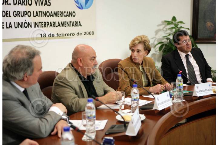 MÉXICO, D.F. 18FEBRERO2008.- Darío Vívas Velazco, presidente del Grupo Latinoamericano y del Caribe (GRULAC) de la UIP fué recibido por los integrantes de la Delegación Permanente del Congreso Mexicano ante la Unión Interparlamentaria (UIP), encabezados por la senadora del PRI Rosario Green Macías FOTO: SENADO/CUARTOSCURO.COM