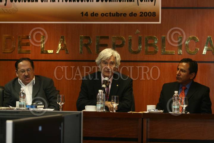 MÉXICO D.F., 14OCTUBRE2008.-El cineasta Maurice Bulbulian fué recibido por legisladores perredistas en torre del caballito, lo acompañan los senadores perredistas José Luis García y Lázaro Mazón. FOTO: SÁSHENKA GUTIÉRREZ /CUARTOSCURO.COM