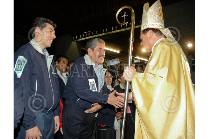 MÉXICO, D.F., 03DICIEMBRE2009.- La Unión de Expendedores y Voceadores de los Periodicos de México encabezados por su lider Raul Ramos acudieron en la 64a peregrinación a la Basilica de Guadalupe en donde fueron recibidos por el cardenal Norberto Rivera Carrera. FOTO: RODOLFO ANGULO/CUARTOSCURO.COM