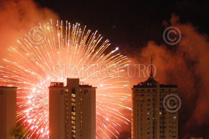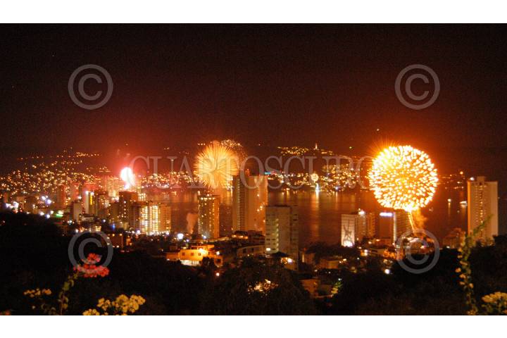 ACAPULCO, GRO 01ENERO2005 En el marco de las celebraciones del año nuevo en Acapulco se llevó a cabo un show de fuegos pirotécnicos sobre la bahía de Santa Lucía. FOTO: Eric Miralrío/CUARTOSCURO.COM