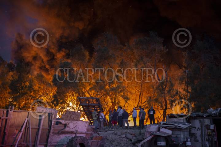 Civiles y Militares observando las columnas de humo del incendio en la fabrica "Reciclados BC" en Tijuana.