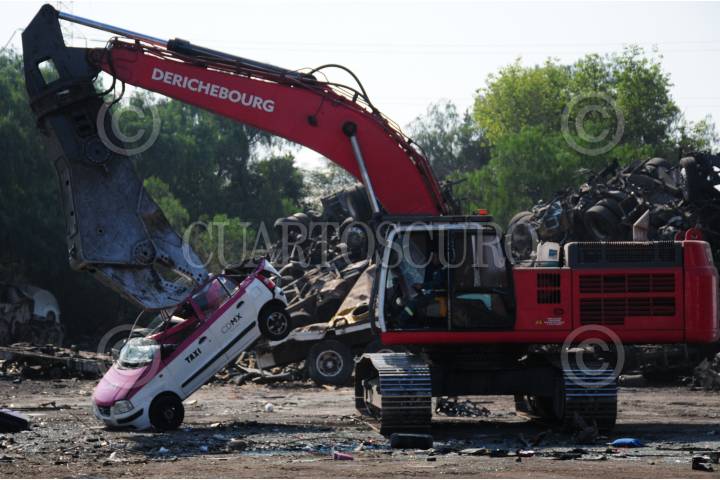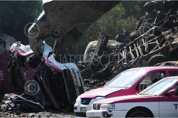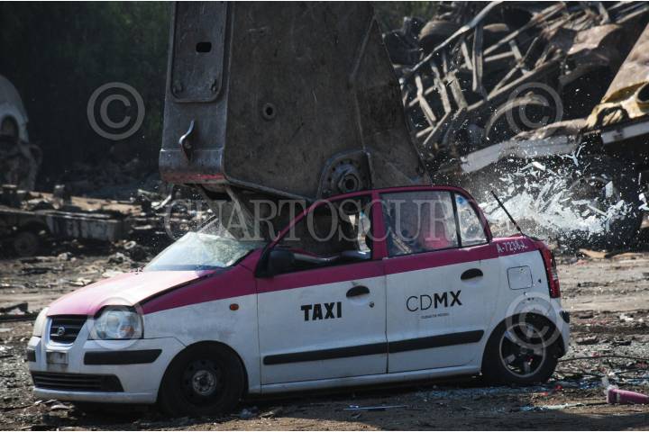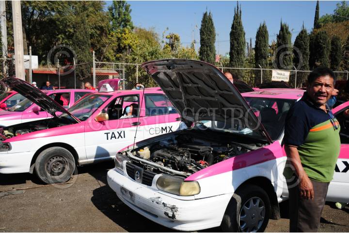 Chóferes de taxi esperan acceder a la planta para realizar el proceso de chatarrización.