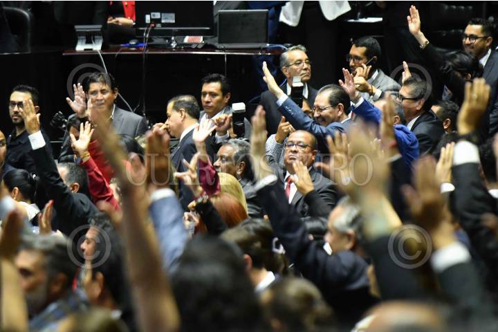 CIUDAD DE MÉXICO, 01SEPTIEMBRE2024.- Votación del grupo parlamentario de Morena durante la primera sesión ordinaria de la LXVI Legislatura de la Cámara de Diputados en la que se dio la declaracion de validez de la elección y declaración de Claudia Sheinbaum, como presidenta electa de México, y la declaratoria de publicidad al dictamen de reforma al Poder Judicial que será discutido el próximo martes. FOTO: MARIO JASSO/CUARTOSCURO.COM