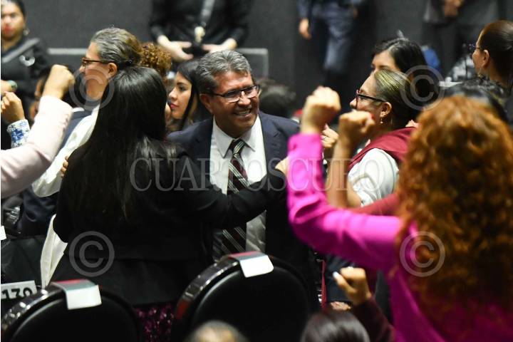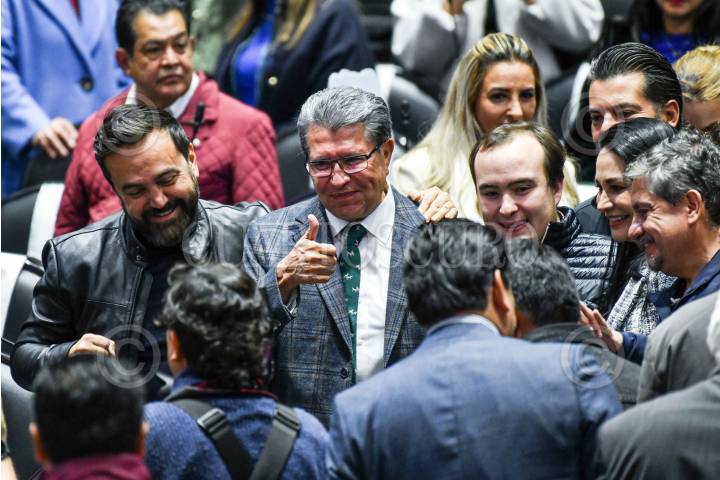 CIUDAD DE MÉXICO, 01SEPTIEMBRE2024.- Ricardo Monreal, diputado y coordinador de Morena es felicitado por sus compañeras de bancada al finalizar su intervención en la primera sesión ordinaria de la LXVI Legislatura de la Cámara de Diputados en la que se dio la declaracion de validez de la elección y declaración de Claudia Sheinbaum, como presidenta electa de México, y la declaratoria de publicidad al dictamen de reforma al Poder Judicial que será discutido el próximo martes. FOTO: MARIO JASSO/CUARTOSCURO.COM