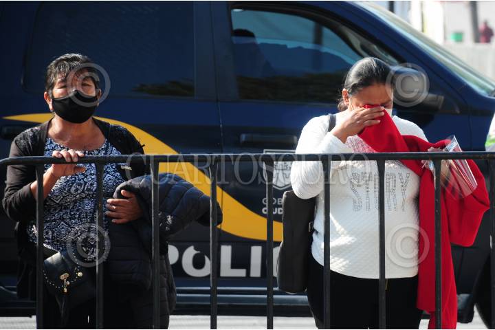 Dos fieles lloran afuera de la Basílica de Guadalupe la cual permanecerá cerrada hasta el domingo.