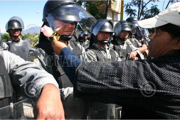 OAXACA, OAXACA 29OCTUBRE2006.- Pobladores de la ciudad de Oaxaca, reclaman a elementos de la PFP, por su intervención en el conflicto con el magisterio de la sección 22. FOTO: MAX NUÑEZ/CUARTOSCURO.COM