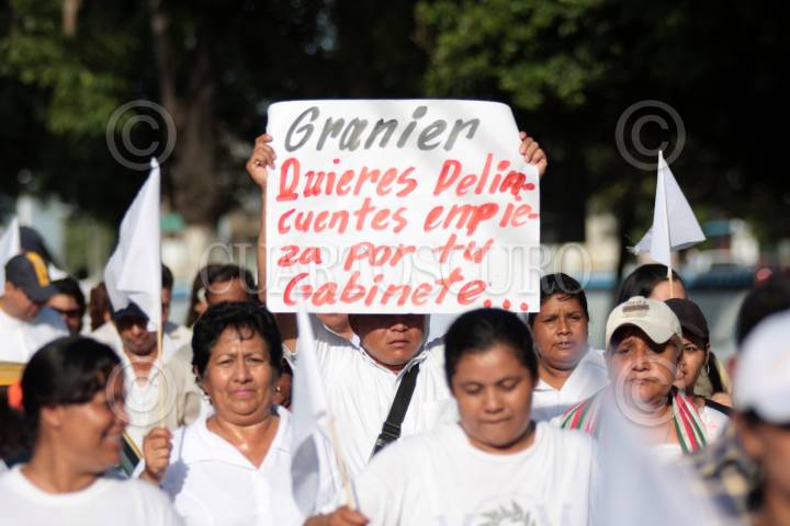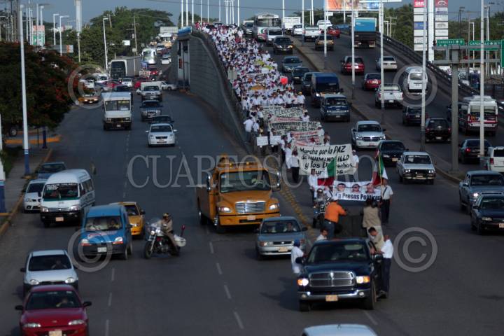 VILLAHERMOSA, TABASCO, 01SEPTIEMBRE2009.- Marchistas del PRD que salieron del municipio de Huimanguillo el pasado viernes, encabezando el movimiento de la “Paz y Derechos Humanos” entraron a la capital del estado con un sin números de pancartas y reclamaciones hacia el gobernador y procurador local. En su caminata los más de mil manifestantes provenientes también de los municipios de Cárdenas, Cunduacán y Paraiso se dirigen hacia el Palacio de Gobierno en donde encabezaran un mitin el día de hoy. FOTO: MARCO POLO GUZMÁN HERNÁNDEZ/CUARTOSCURO.COM