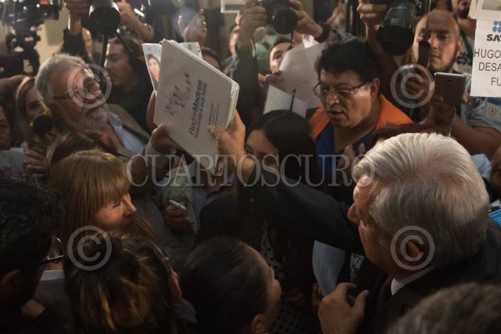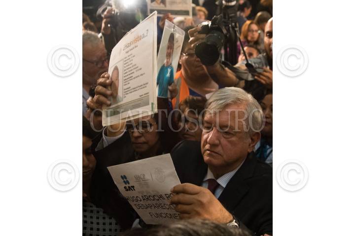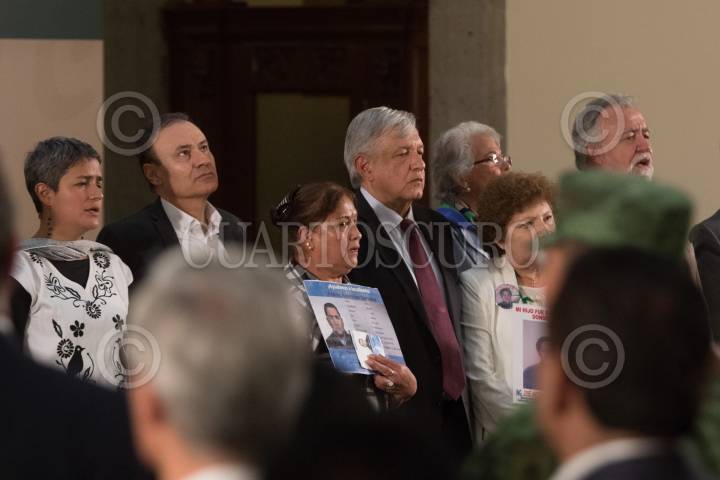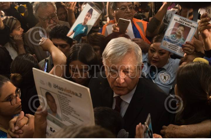 CIUDAD DE MÉXICO, 24JUNIO2019.- El Jefe del Ejecutivo Andrés Manuel López Obrador encabezó el Informe de Trabajo del Sistema Nacional de Búsqueda, en Palacio Nacional, al finalizar decenas de personas que buscan a sus familiares desaparecidos se acercaron al mandatario para exigirle les ayude a dar con el paradero de su gente. FOTO: MOISÉS PABLO /CUARTOSCURO.COM