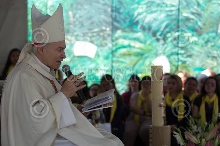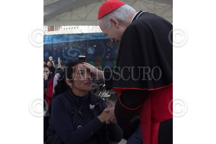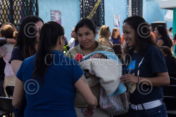 CIUDAD DE MÉXICO, 10MAYO2018.- Decenas de internas del Centro Femenil de Reinserción Social de Santa Martha Acatitla fueron celebradas con motivo del Día de las Madres con una misa auspiciada por Carlos Aguiar Retes, arzobispo primado de México, quien oró por ellas y sus familias. Asimismo, José Ramón Amieva, jefe de gobierno de la capital, arribó posteriormente a las instalaciones. Entre abrazos, sollozos y lágrimas, algunas reclusas pudieron compartir con sus hijos o madres. FOTO: GALO CAÑAS /CUARTOSCURO.COM