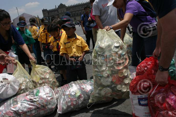 MÉXICO, D.F., 28AGOSTO2010.- La Asociación de Scouts de México, A.C., inició el día de hoy 28 de agosto de 2010, la recolecta de latas de aluminio para realizar la flor de lis más grande del mundo. Esto se llevó acabo en la explanada del Zócalo capitalino. FOTO: MISAEL VALTIERRA/CUARTOSCURO.COM