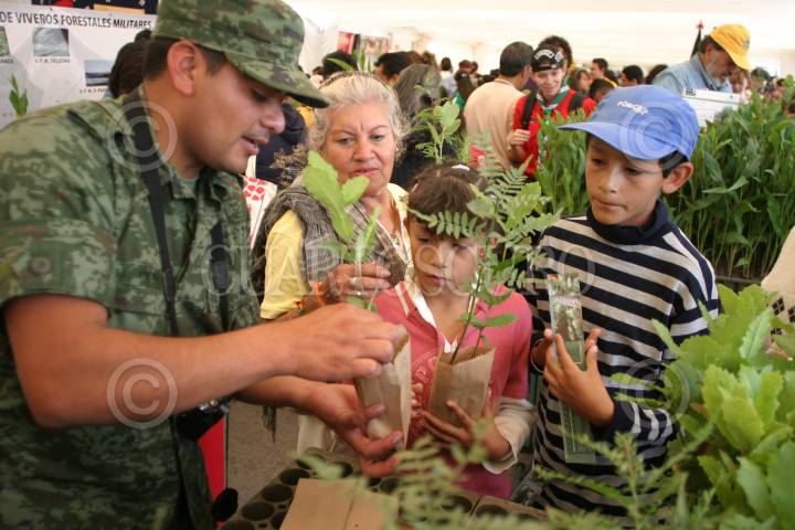 MÉXICO, D.F., 28AGOSTO2010.- La Secretaría de la Defensa Nacional (Sedena), regalo plantas y árboles a niños Scouts. La Asociación de Scouts de México, A.C., inició el día de hoy 28 de agosto de 2010, la recolecta de latas de aluminio para realizar la flor de lis más grande del mundo. FOTO: MISAEL VALTIERRA/CUARTOSCURO.COM
