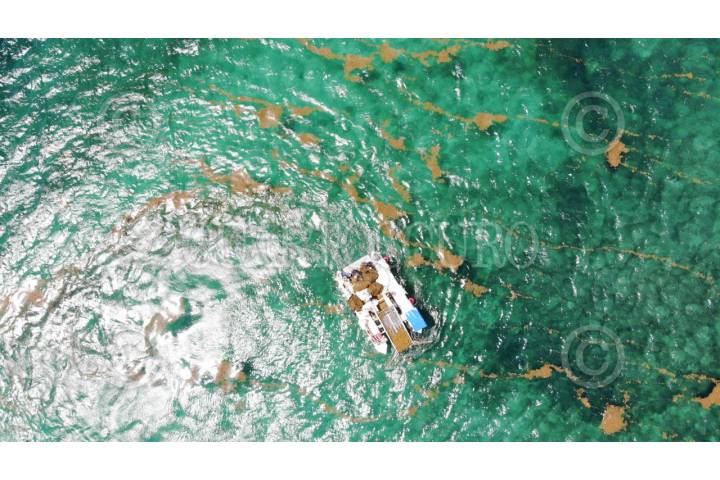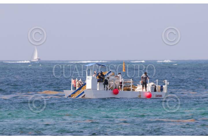 PUERTO MORELOS, QUINTANA ROO, 23MAYO2019.- Puerto Morelos cuenta con una estrategia integral para combatir el fenómeno natural del sargazo en complemento a las barreras marinas una embarcación recolecta la planta en el mar con esta labor se retira el 65% del sargazo del mar, así se continua de manera intensa el combate a esta macroalga. FOTO: ELIZABETH RUIZ /CUARTOSCURO.COM
