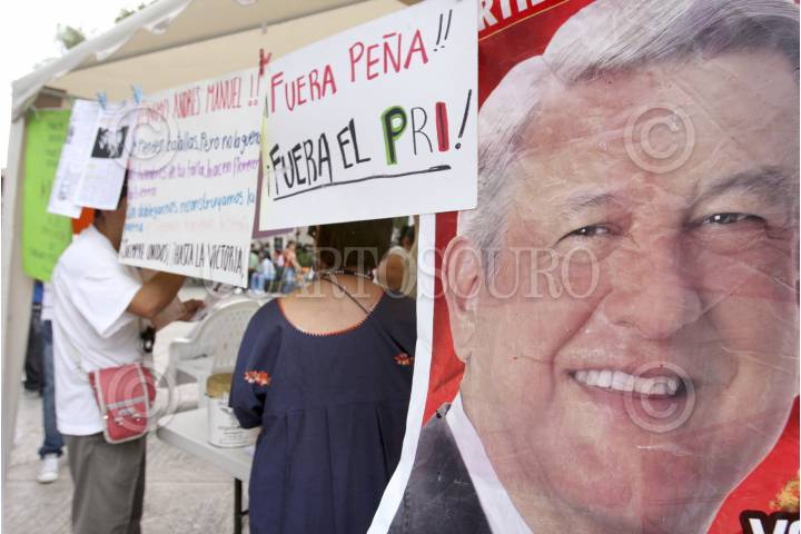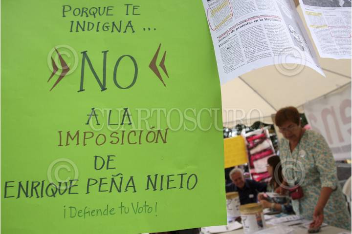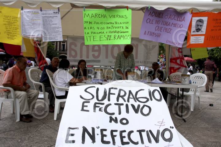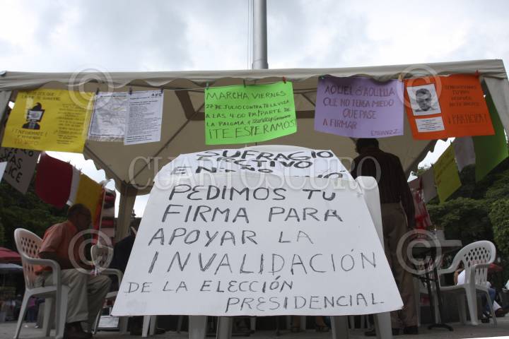 CUERNAVACA, MORELOS., 23JULIO2012.- En el zócalo de la capital morelense se ha instalado un módulo para recolectar firmas con el fin de anular las elecciones presidenciales realizadas el pasado 02 de julio. FOTO: ALMA LAFAYET /CUARTOSCURO.COM
