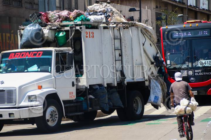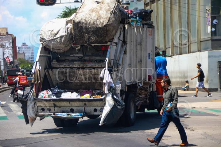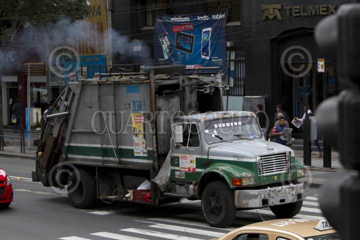 Camiones recolectores de basura, realizan un recorrido por las calles y avenidas del primer cuadro de la Capital del país. Trabajadores de limpia realizan constantemente por esta zona.