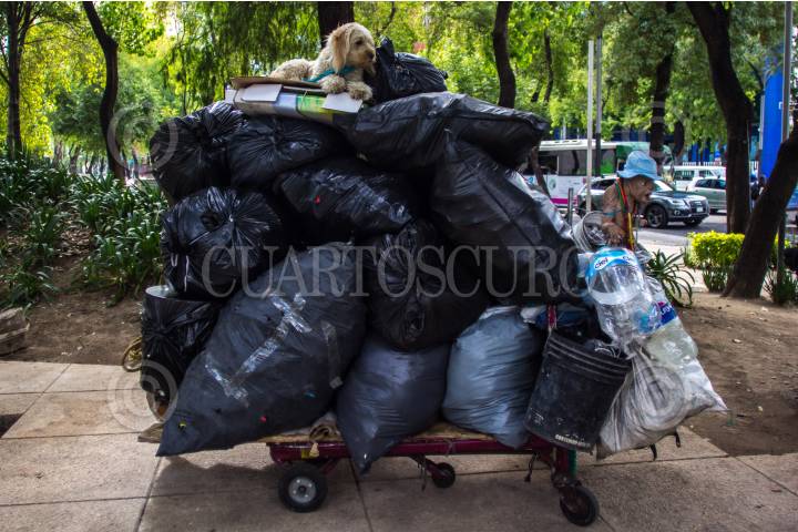 CUERNAVACA, MORELOS, 06AGOSTO2019. Un hombre de la tercera edad recolecta plástico de la basura en grandes bolsas negras, en la calle Libertad de la colonia Carolina. Es común ver a personas de todas las edades hurgar en las bolsas de basura para colectar plástico para después venderlo y ganar algunos pesos. FOTO: MARGARITO PÉREZ RETANA /CUARTOSCURO.COM