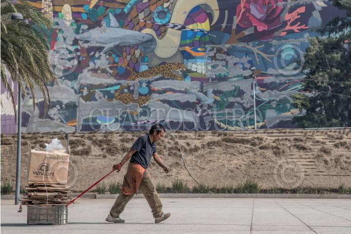 CIUDAD DE MÉXICO, 23ENERO2018.- Un señor se ayuda de una caja de plástico para facilitar el desplazamiento de su cartón recolectado, ésto sobre la Plaza Plaza Tlaxcoaque. FOTO: MARIO JASSO /CUARTOSCURO.COM
