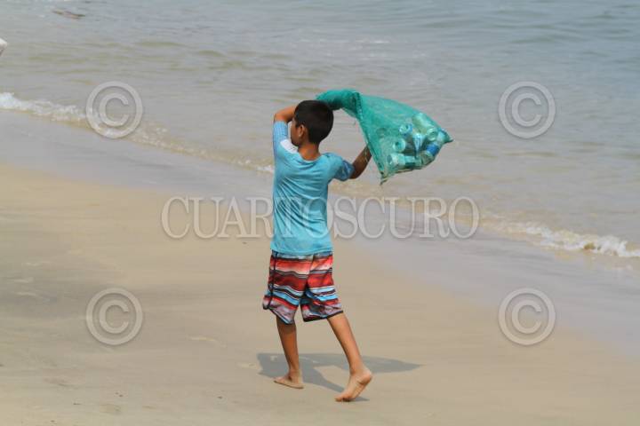 ACAPULCO, GUERRERO, 29ABRIL2019.- Un niño busca latas de aluminio en las playas para posteriormente vender y ganarse algo de dinero. FOTO: BERNANDINO HERNÁNDEZ /CUARTOSCURO.COM