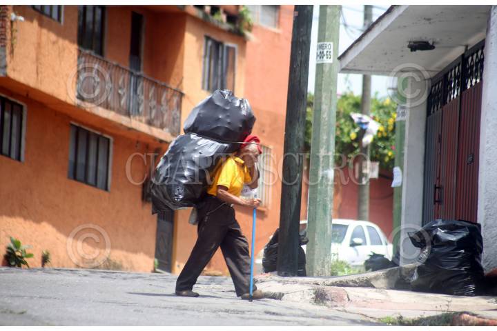 CUERNAVACA, MORELOS, 18MARZO2019. Un hombre camina por una calle del pueblo de Ocotepec, con una enorme bolsa de plástico donde va guardando las botellas de plástico o latas de aluminio que encuentra, las cuales venderá más tarde para allegarse de algunos pesos. FOTO: MARGARITO PÉREZ RETANA /CUARTOSCURO.COM