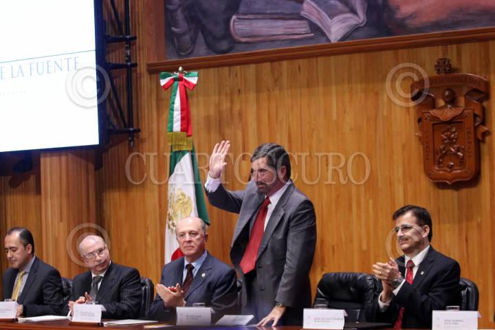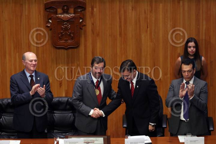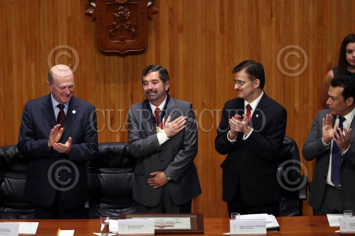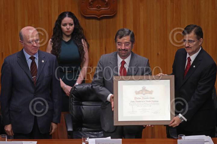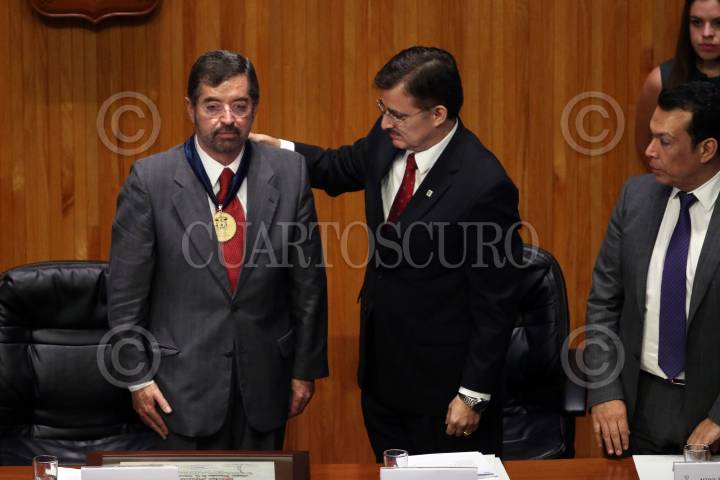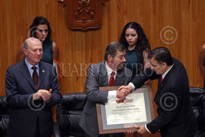 GUADALAJARA, JALISCO. 30NOVIEMBRE2015.-El Ex Rector de la UNAM, Juan Ramón de la Fuente, fue reconocido hoy en el Paraninfo Enrique Díaz de León, con el Doctorado Honoris Causa por la Universidad de Guadalajara, esto en el marco de la edición 29 de la Feria Internacional del Libro de Guadalajara FIL, que tiene como país invitado de honor al Reino Unido. FOTO: FERNANDO CARRANZA GARCIA / CUARTOSCURO.COM