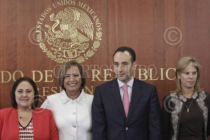 CIUDAD DE MÉXICO, 08MARZO2016.- Rosario Marín, ex secretaria del Tesoro de Estados Unidos, y quien recibirá el reconocimiento "Elvia Carrillo Puerto" del Senado de la República, ofreció conferencia de prensa con Roberto Gil Zuarth, presidente de la Mesa Directiva, previo a la sesión solemne. FOTO: ISAAC ESQUIVEL /CUARTOSCURO.COM