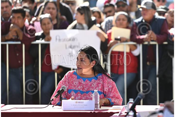 MOGÓVATO, URIPE, CHIHUAHUA, 20DICIEMBRE2024.- Ariadna Montiel Reyes, secretaria de Bienestar, durante la firma de Decretos de Reconocimiento de Propiedad Comunal tradicional de Tierras a Comunidades Rarámuri, así cómo la Evaluación del Plan de Justicia de los Pueblos de la Sierra Tarahumara. FOTO: PRESIDENCIA/CUARTOSCURO.COM