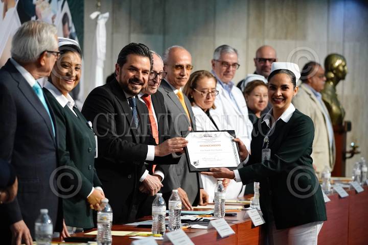 CIUDAD DE MÉXICO, 06ENERO2025.- El director general del Instituto Mexicano del Seguro Social (IMSS), Zoé Robledo, destacó que el 6 de enero de 2020 -en que se celebró por primera vez de manera conjunta al personal de Enfermería del sector Salud-, marcó un antes y un después en la institución: se han cumplido los retos trazados como crear nuevas plazas, mayor acceso a cargos de toma de decisión, ampliación de la oferta académica y del reconocimiento de la licenciatura. Durante la ceremonia de Reconocimiento a la Calidad de la Atención del Personal de Enfermería, señaló que en los últimos cinco años se incrementó la plantilla en 12 mil 040 trabajadores, la mayor parte con categoría de Enfermera General y Auxiliar de Enfermería; en 2019 se contaba con 109 mil 269 enfermeras y enfermeros, actualmente son más de 121 mil. A su vez, la titular de la Coordinación de Enfermería, Fabiana Maribel Zepeda Arias, subrayó que muestra del impacto que realiza el gremio diariamente son los más de 52 mil chequeos PrevenIMSS, más de 34 mil procedimientos de diálisis peritoneal, más de 42 mil atenciones integrales o consultorías de especialista en Medicina Familiar y en Geriatría, 31 mil procedimientos de hemodiálisis, y miles de acciones que no se cuentan, como los abrazos y palabras de aliento que construyen lo que significa esta profesión. FOTO: IMSS/CUARTOSCURO.COM