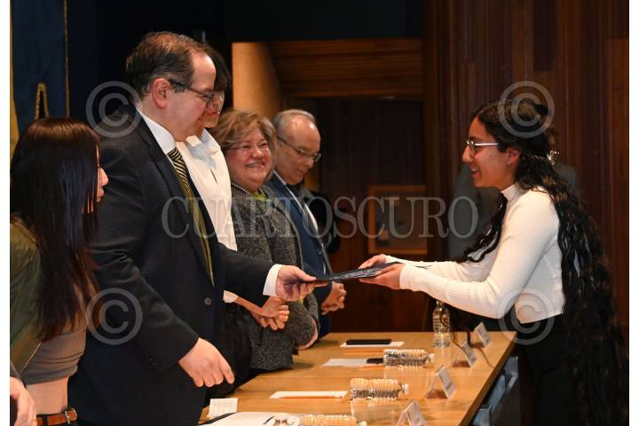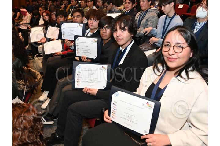 CIUDAD DE MÉXICO, 28ENERO2025.- El rector de la UNAM, Leonardo Lomelí Vanegas, afirmó que, aunque las juventudes de nuestro país representan casi una cuarta parte de la población total -23.8 por ciento-, solo seis de cada 10 jóvenes tienen acceso a educación media superior, según datos del INEGI. “Esta realidad nos interpela y nos recuerda que la educación pública no es solo un derecho, sino una vía indispensable para edificar un futuro sostenible y con soluciones reales a los múltiples desafíos del país”, señaló al presidir la ceremonia de entrega de premios a las y los 64 ganadores de la 13ª Olimpiada Universitaria del Conocimiento. Bachillerato 2024. El rector presidió la ceremonia de entrega de premios a las y los ganadores de la 13ª Olimpiada Universitaria del Conocimiento. Bachillerato 2024. FOTO: UNAM/CUARTOSCURO.COM