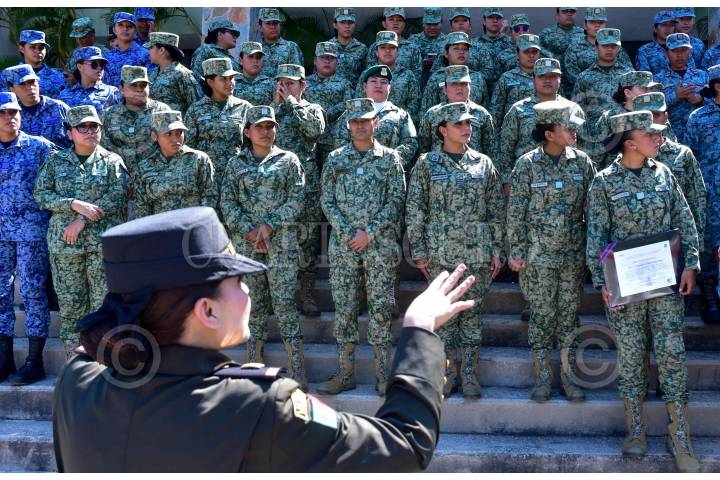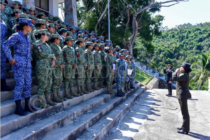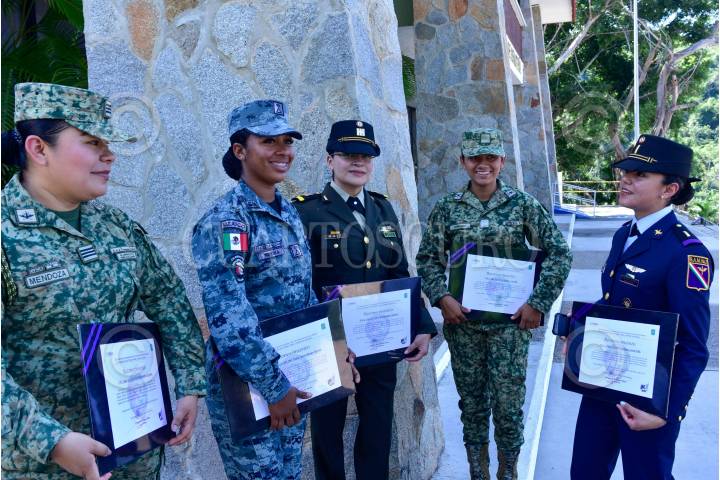 ACAPULCO, GUERRERO, 07MARZO2025.- Mujeres de la Fuerza Área Mexicana, Guardia Nacional y Ejército Mexicano, conviven en las instalaciones de la Novena Región Militar, en donde recibieron reconocimientos por desempeño en conmemoración del Día de la Mujer. FOTO: CARLOS ALBERTO CARBAJAL/CUARTOSCURO.COM