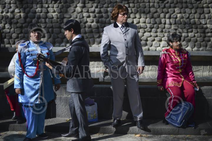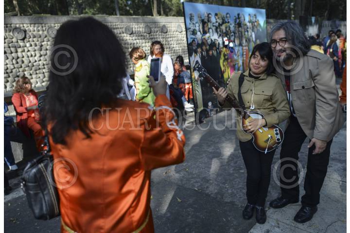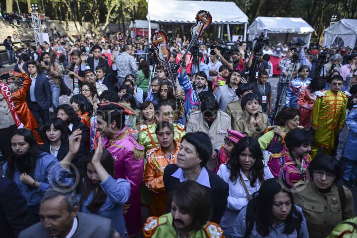MÉXICO, D.F., 28NOVIEMBRE2015.- Con 294 participantes caracterizados de los integrantes de The Beatles, habitantes de la ciudad lograron romper el Récord Guiness que mantenía la ciudad de Londres con 251. En un evento realizado por la Secretaria de Turismo del Distrito Federal, que convocó en la fuente de Nezahualcoyotl en el Bosque de Chapultepec, los capitalinos llegaron con atuendos caracteristicos de Ringo, George, John y Paul, como aparecen en sus discos “The Sgt. Pepper Lonely Hearts, Club Band” o “Abbey Road". FOTO: ADOLFO VLADIMIR /CUARTOSCURO.COM
