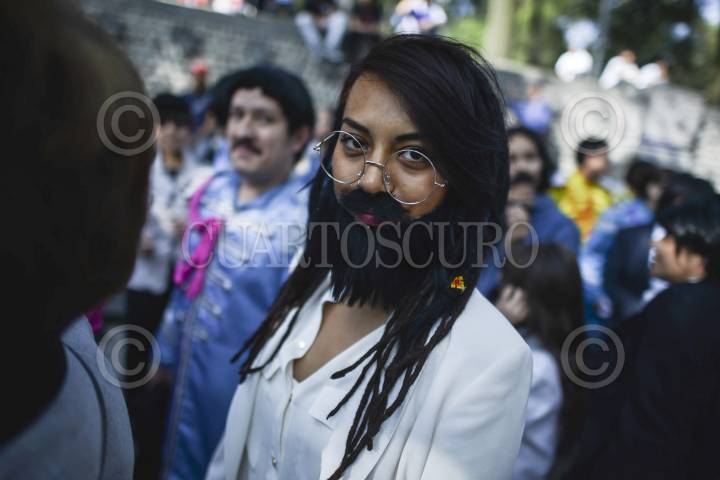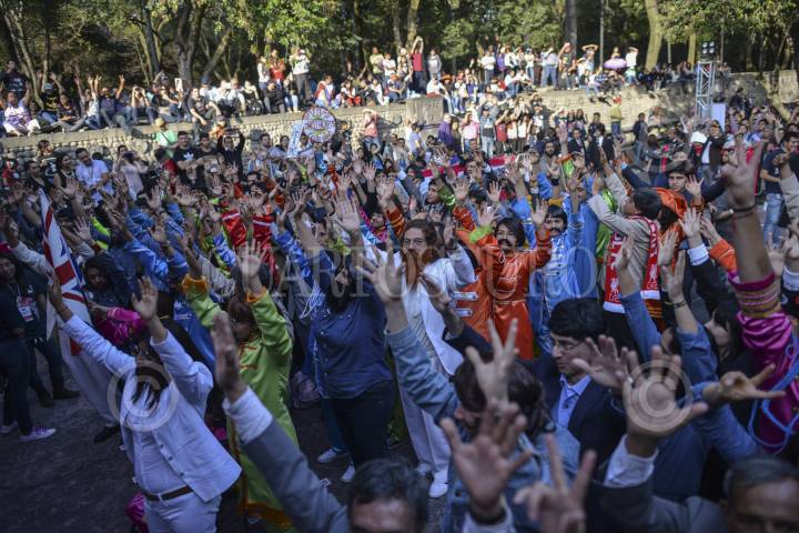 MÉXICO, D.F., 28NOVIEMBRE2015.- Con 294 participantes caracterizados de los integrantes de The Beatles, habitantes de la ciudad lograron romper el Récord Guiness que mantenía la ciudad de Londres con 251. En un evento realizado por la Secretaria de Turismo del Distrito Federal, que convocó en la fuente de Nezahualcoyotl en el Bosque de Chapultepec, los capitalinos llegaron con atuendos característicos de Ringo, George, John y Paul, como aparecen en sus discos “The Sgt. Pepper Lonely Hearts, Club Band” o “Abbey Road". FOTO: ADOLFO VLADIMIR /CUARTOSCURO.COM