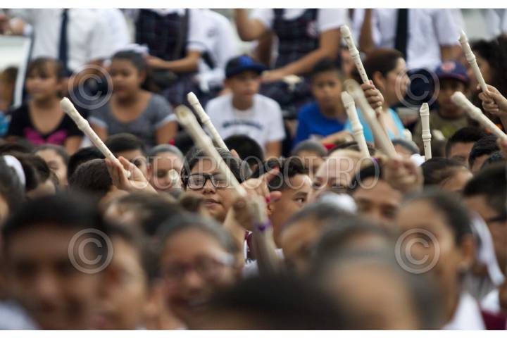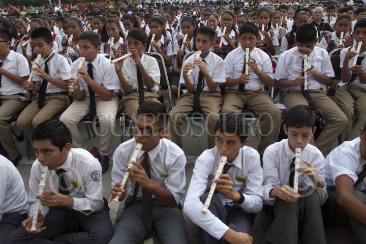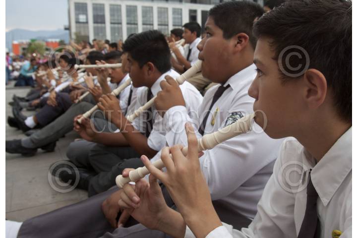 MONTERREY, NUEVO LEÓN, 24SEPTIEMBRE2016.- Diez mil estudiantes de secundaria se congregaron en la Explanada Santa Lucía para tocar con la flauta el corrido de Monterrey y el Himno de la Alegría, como parte de las actividades del Festival Internacional Santa Lucía. FOTO: GABRIELA PÉREZ MONTIEL /CUARTOSCURO.COM