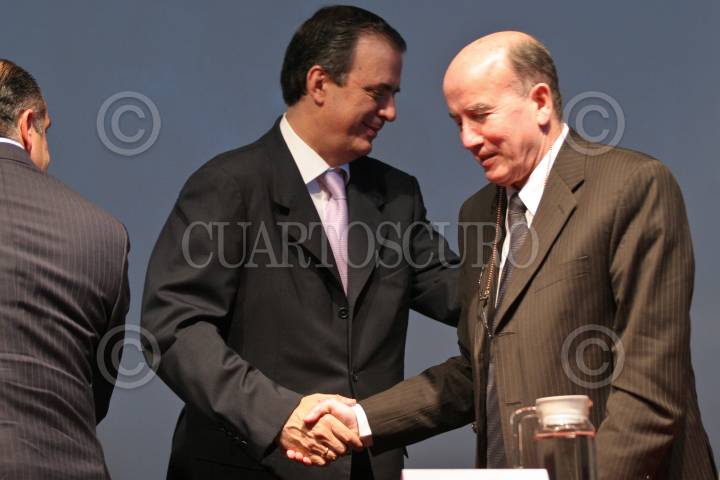 MÉXICO, D.F., 03SEPTIEMBRE2010.- Marcelo Ebrard Casaubon, Jefe de Gobierno del Distrito Federal y Carlos Orvañanos, durante una charla a medios de comunicación, estudiantes y profesores en la Universidad Iberoamericana previo a la inauguración del Corredor Santa Fé. Hoy viernes 3 de septiembre de 2010. FOTO: MISAEL VALTIERRA/CUARTOSCURO.COM