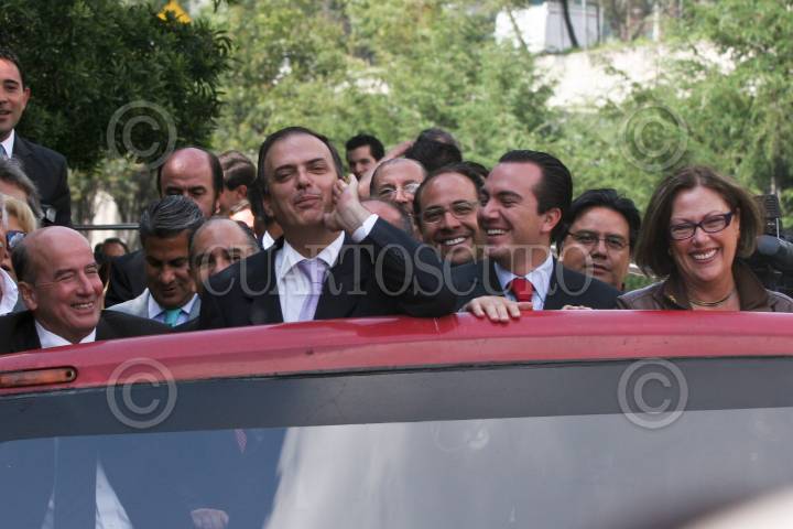 MÉXICO, D.F., 03SEPTIEMBRE2010.- José Morales Orozco, Rector de la Universidad Iberoamericana; Marcelo Ebrard Casaubon, Jefe de Gobierno del Distrito Federal; Carlos Orvañanos Rea, Jefe delegacional en Cuajimalpa, Elena Cepeda, Secretaria de Cultura del DF y Eduardo Santillán, Jefe delegacional en Álvaro Obregón; durante un recorrido por el nuevo Corredor Santa Fé. Hoy viernes 3 de septiembre de 2010. FOTO: MISAEL VALTIERRA/CUARTOSCURO.COM